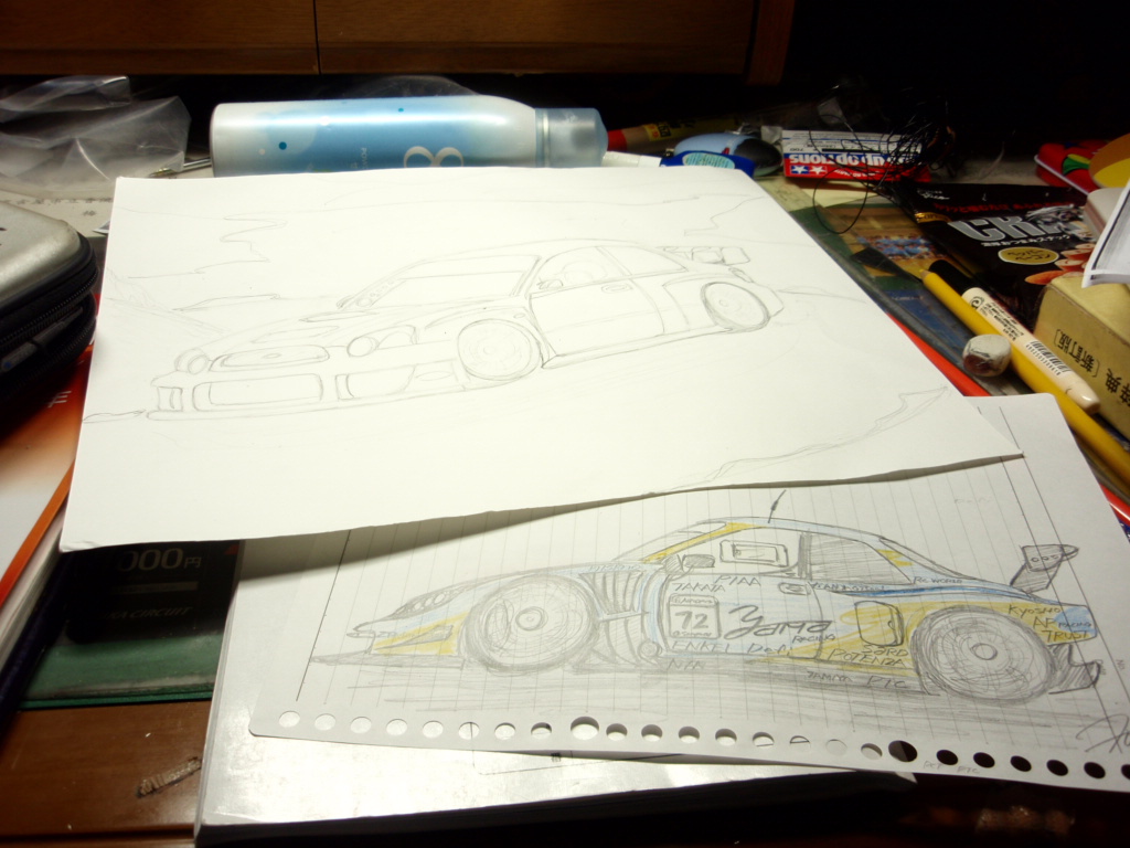 といってもクルマの絵を描いたんだけど久しぶりで結構マジメに描いちゃった。爆